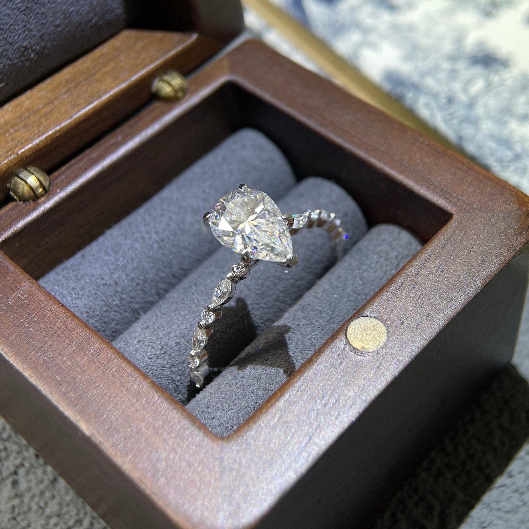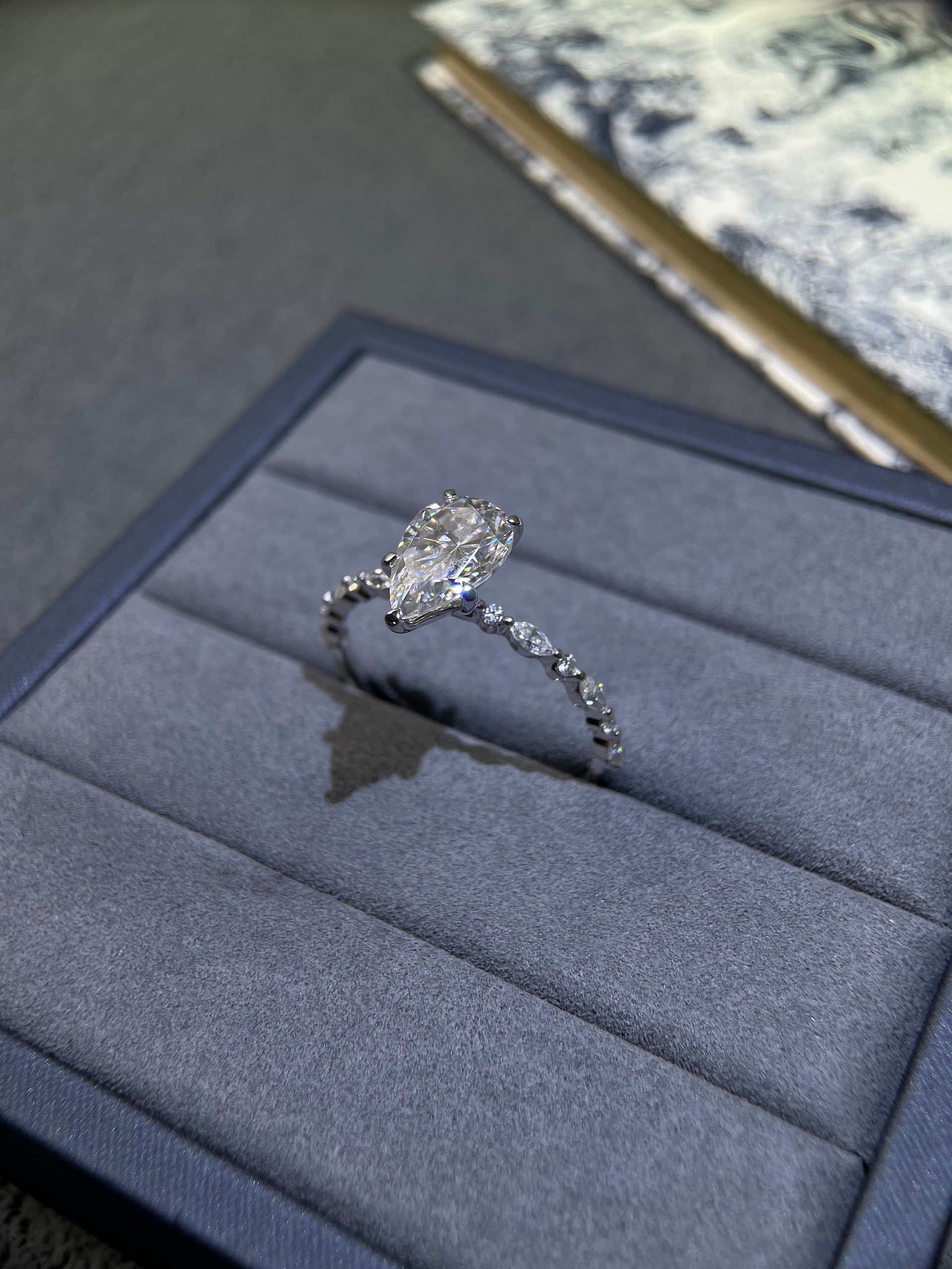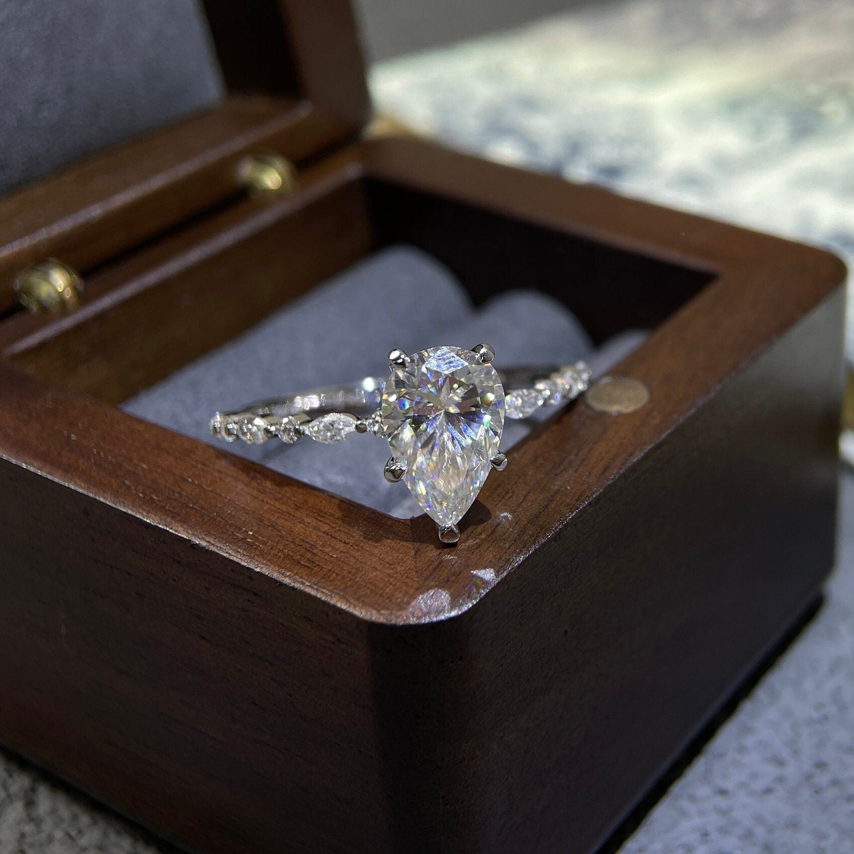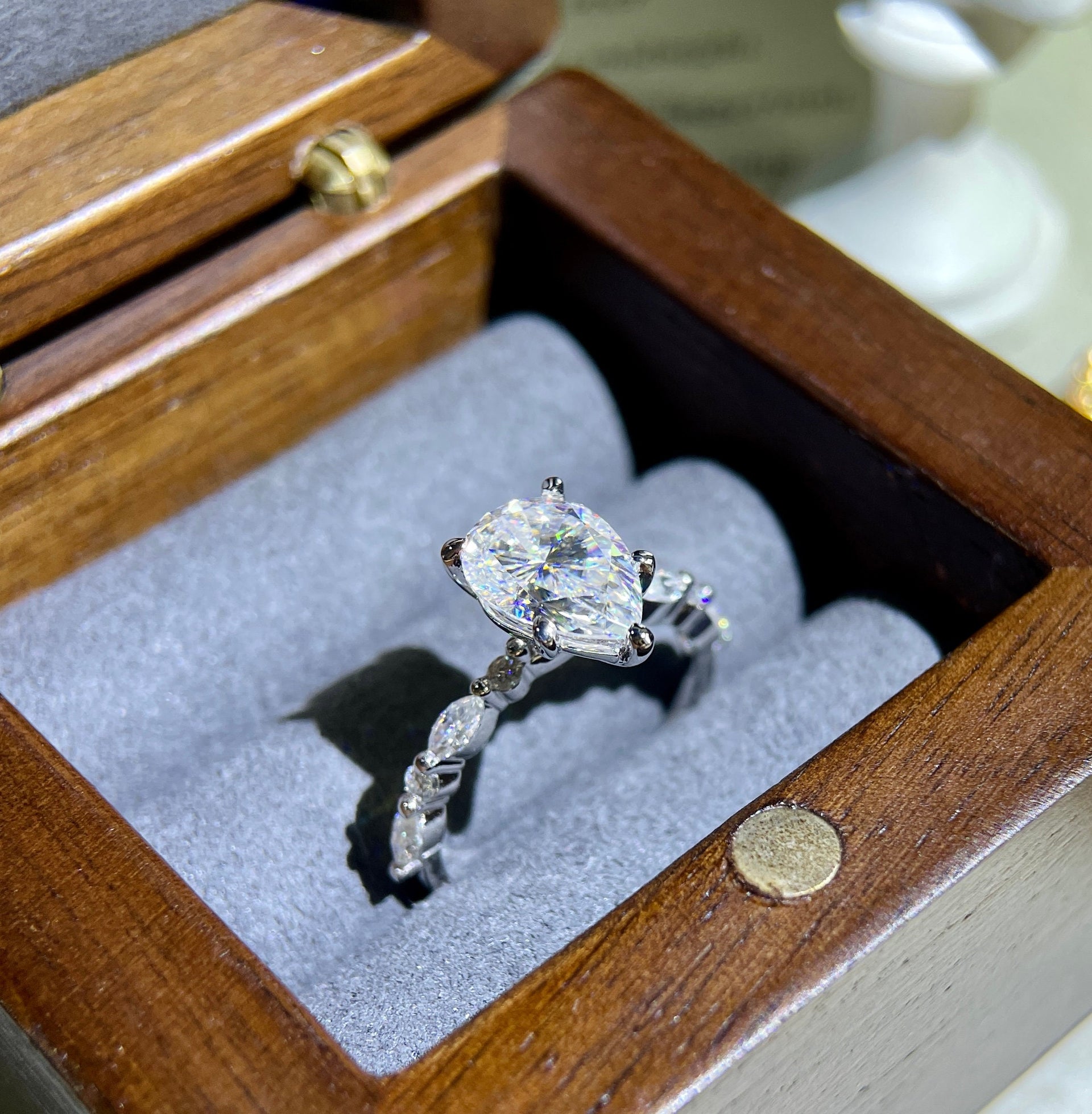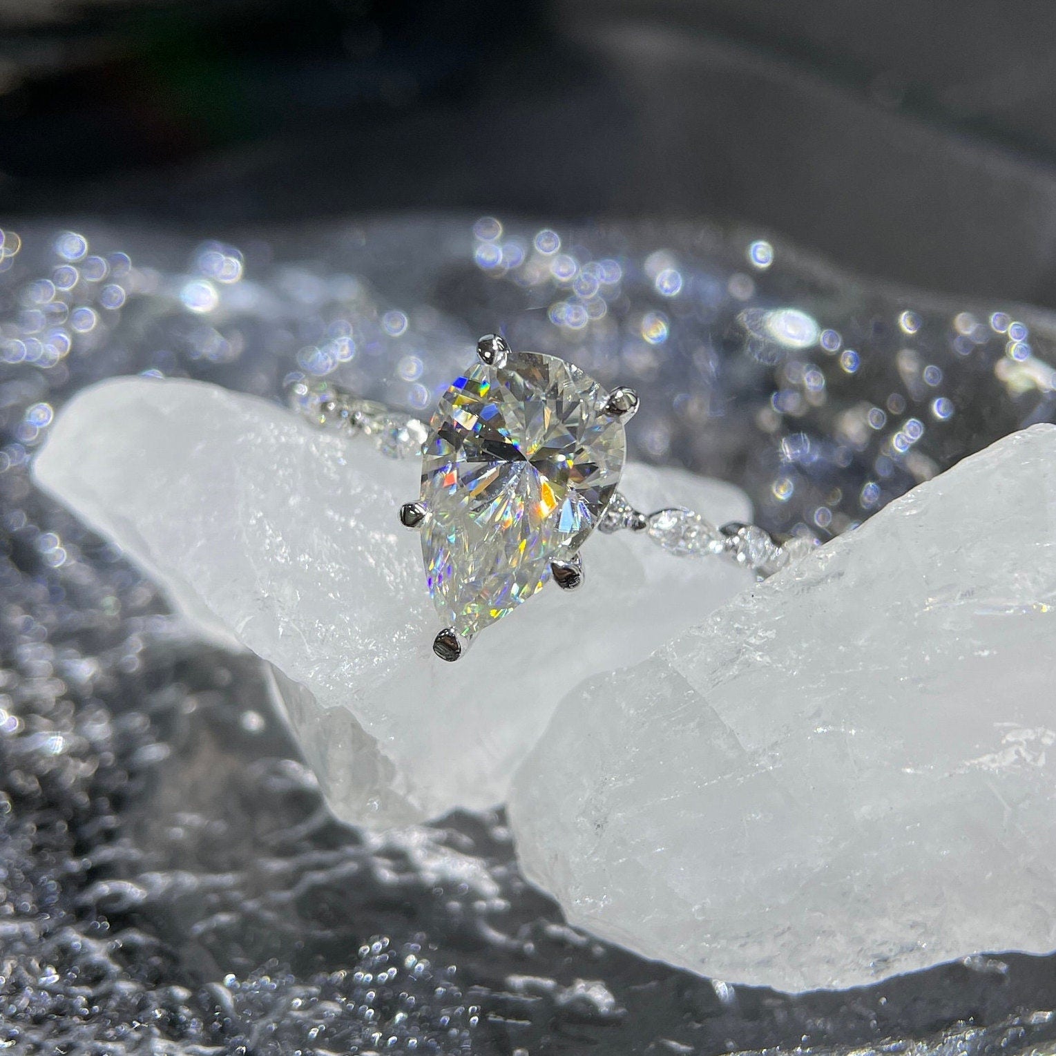 Discover elegance with our Pear Cut Halo Engagement Ring, featuring a stunning 3.0 Ct pear-shaped center stone. Perfect for proposals or special occasions, this exquisite ring combines the brilliance of moissanite and high-quality simulated diamonds.