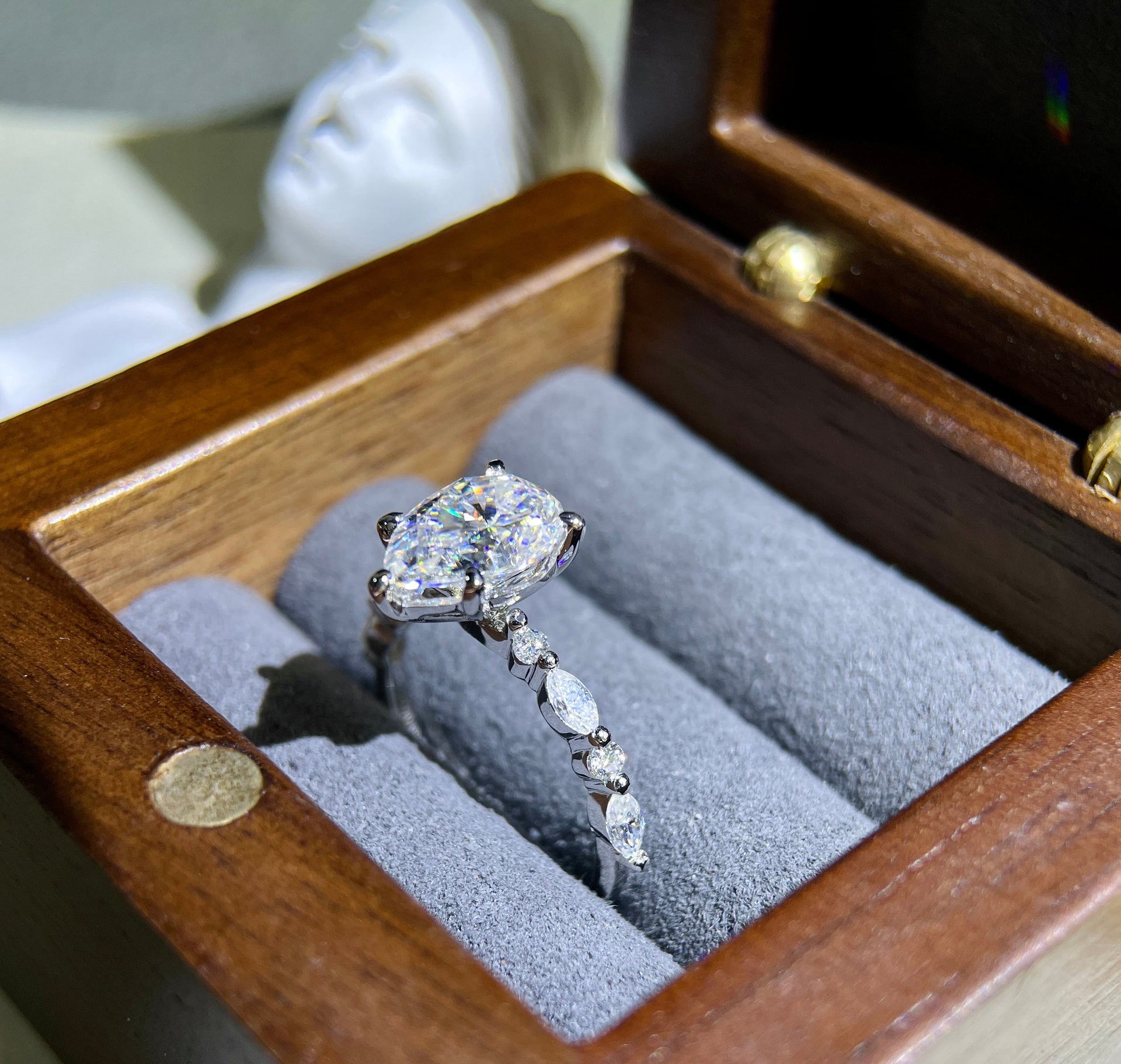 Custom Made Quality: Each ring is hand-crafted by skilled artisans, ensuring top-quality craftsmanship and attention to detail. Our moissanite provides a cost-effective, eco-friendly alternative to traditional diamonds without compromising on sparkle and beauty.