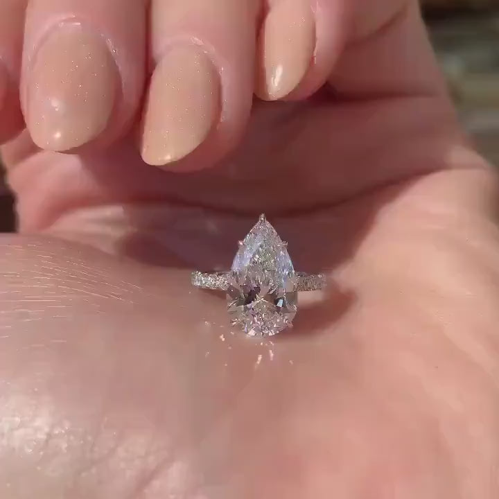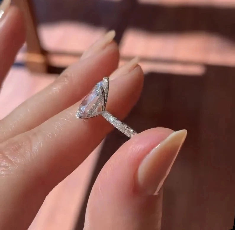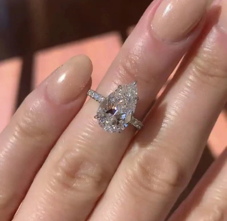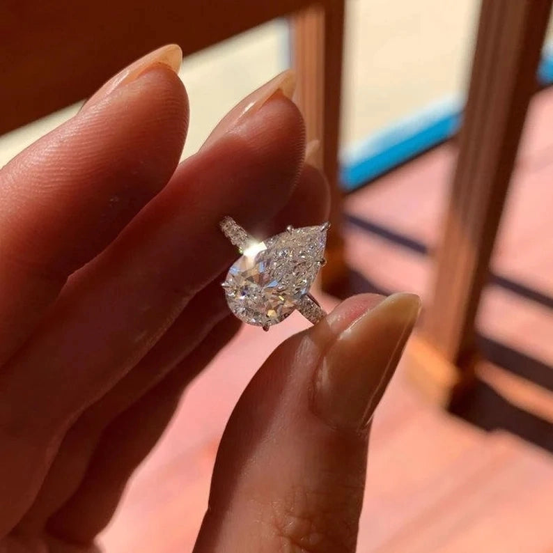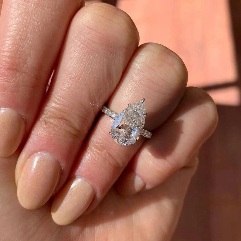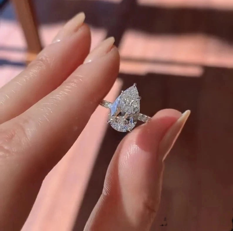 Experience the allure of Moissanite with our Pear Cut Engagement Ring. Order today to add a touch of sophistication to your special moment!