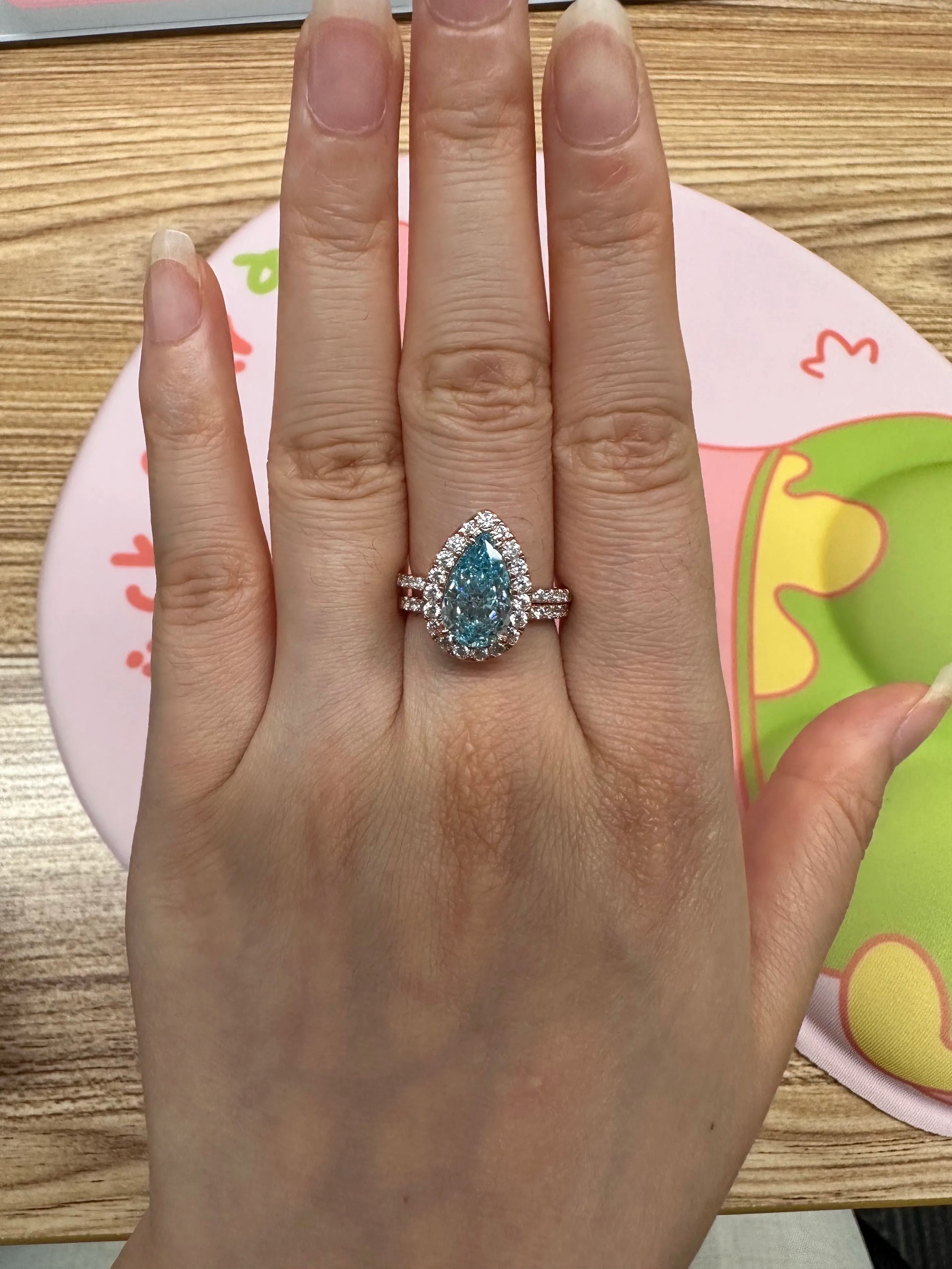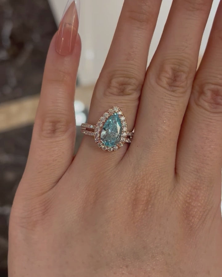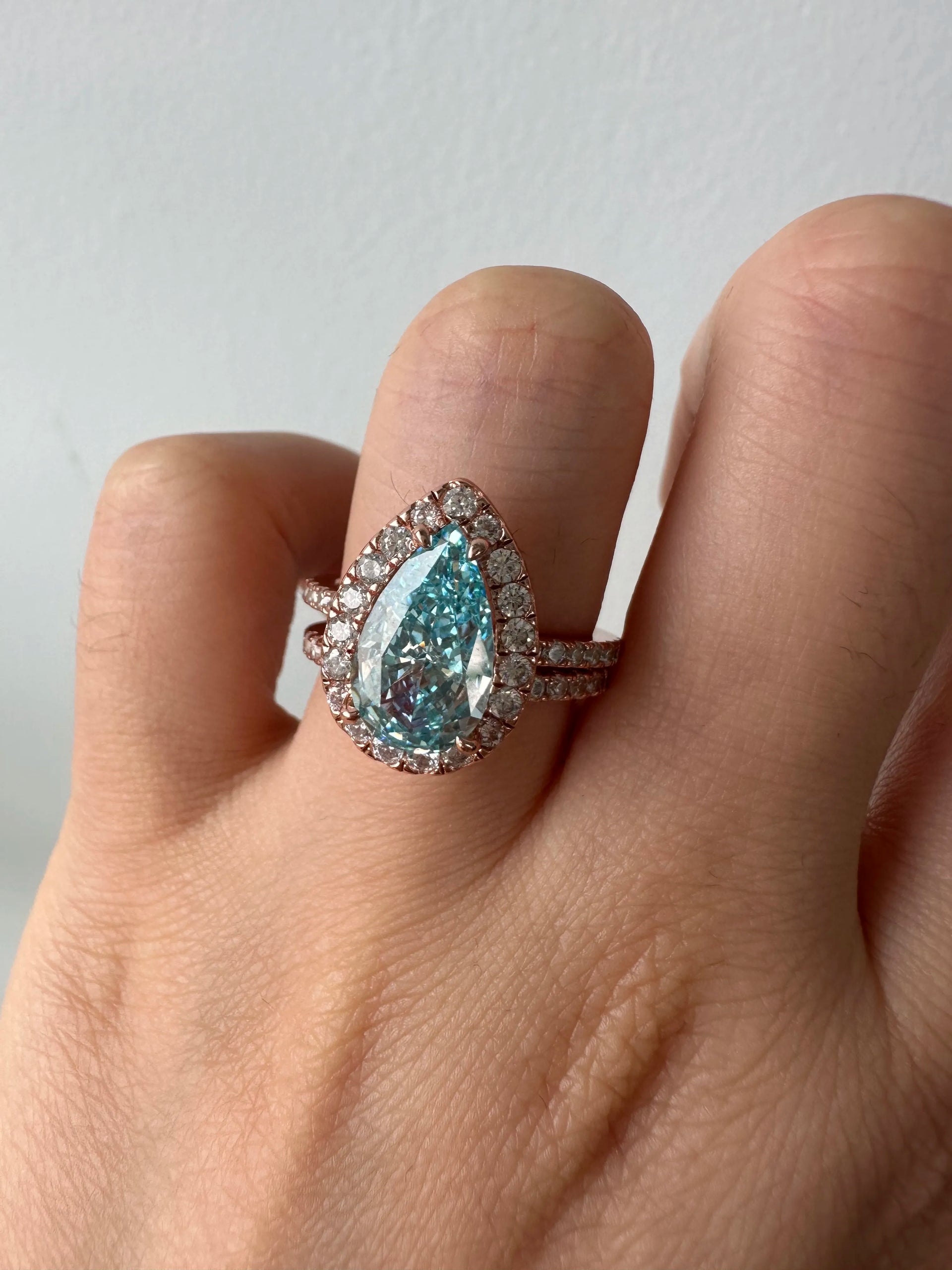 3.0 Ct Pear Cut Cyan Blue Bridal Ring Set | Sterling Silver & 18K Gold Engagement Ring