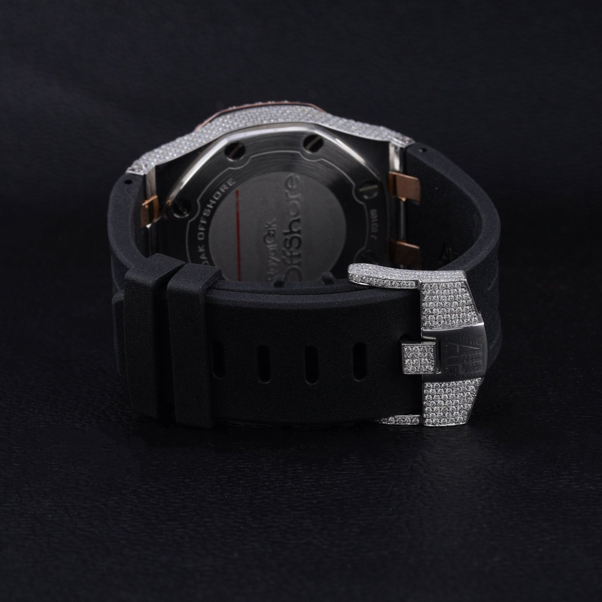 Audemars Piguet Custom Diamond Watch | Black Numeric Dial & Rubber Strap