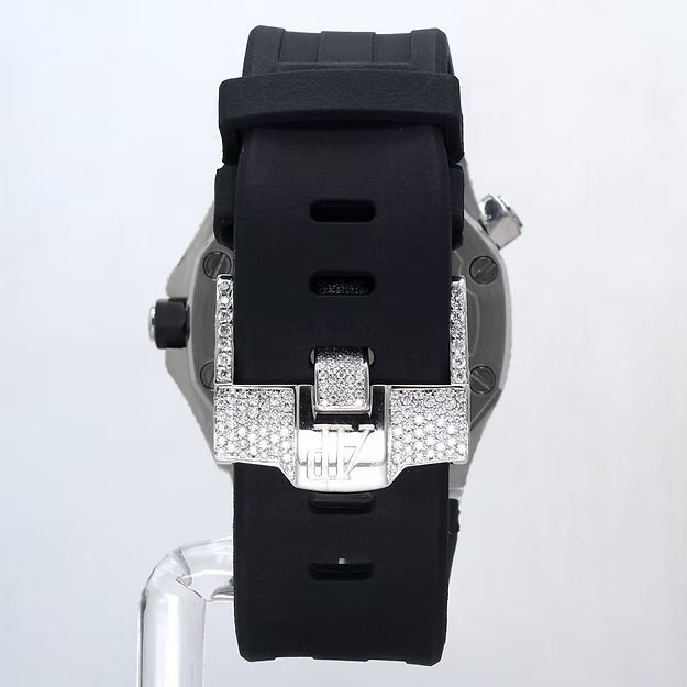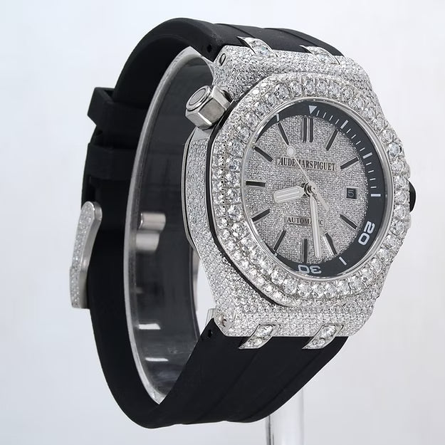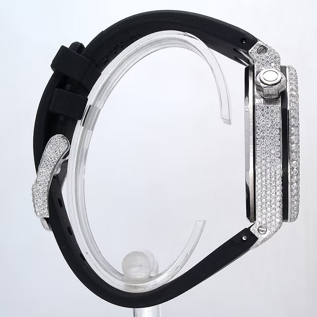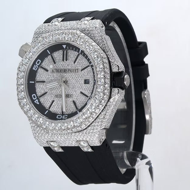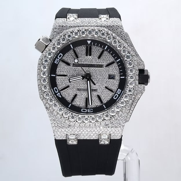 Luxury Black Rubber Strap Watch – Iced Out VVS Moissanite Diamond Automatic Mechanical Outdoor Timepiece for Men