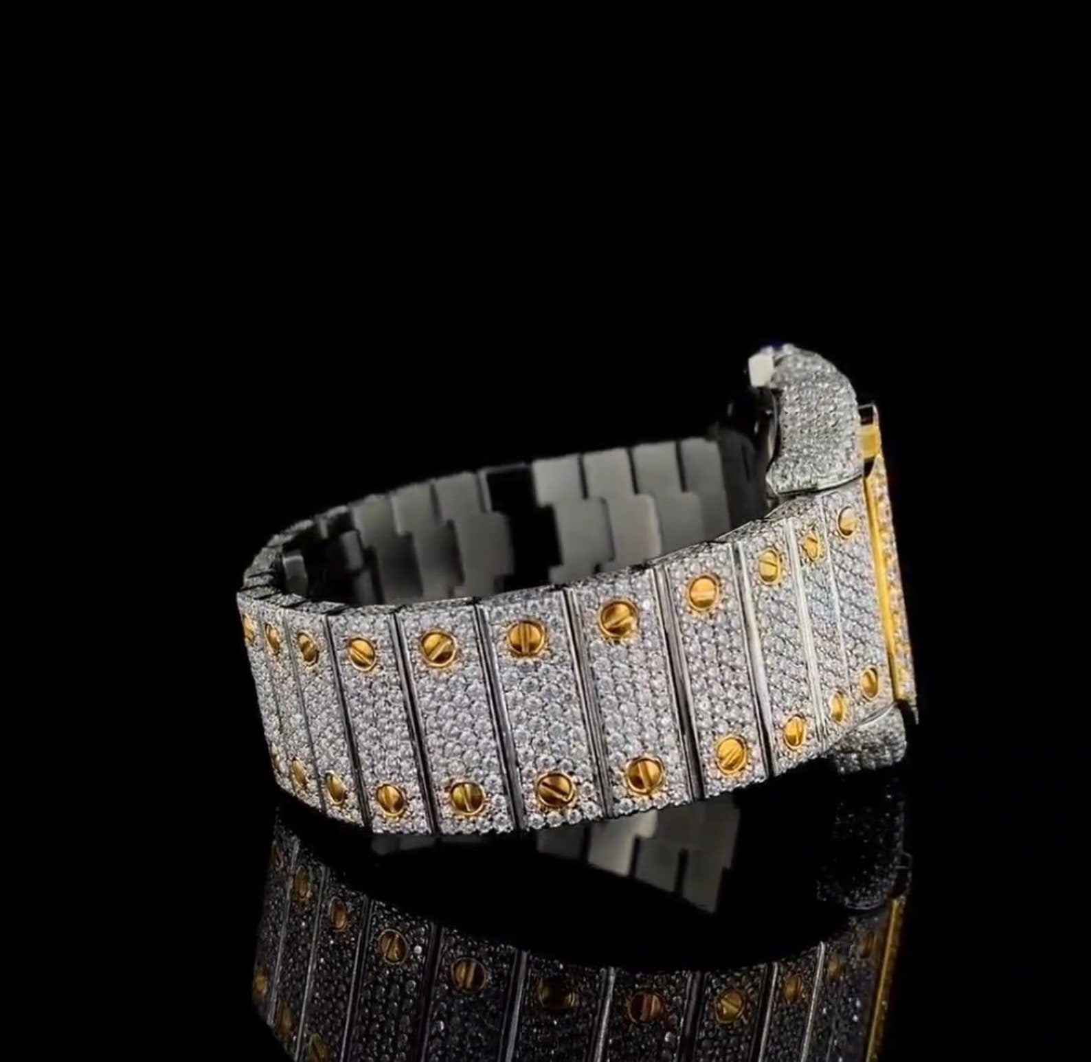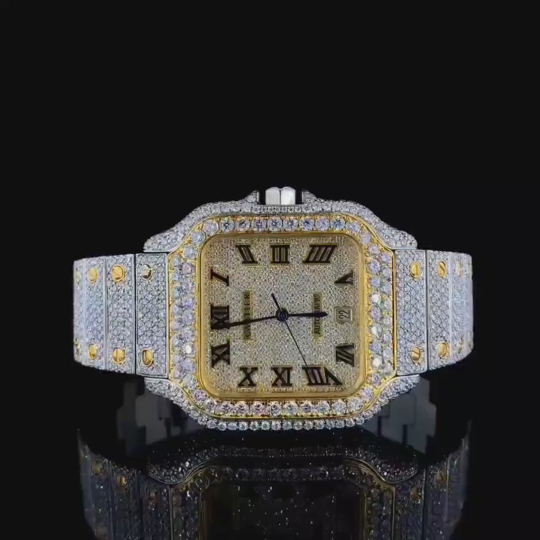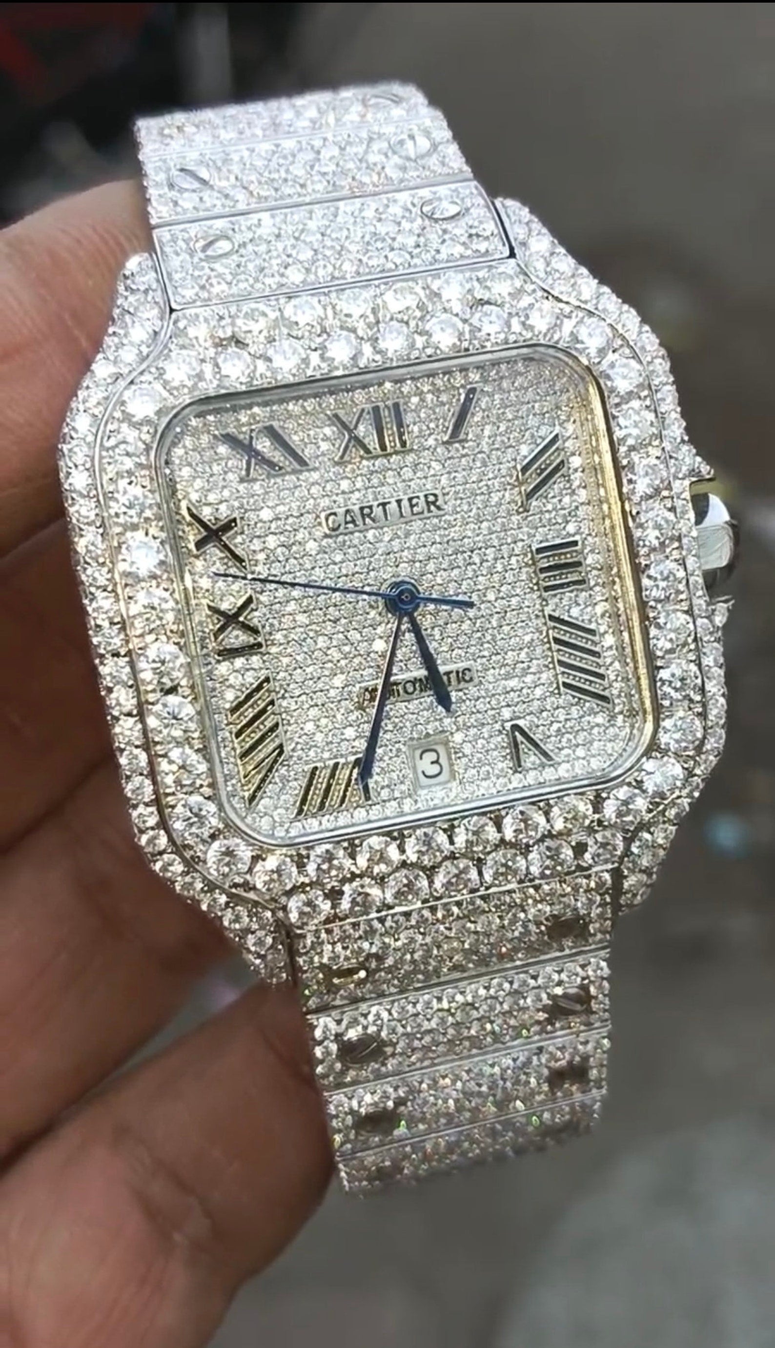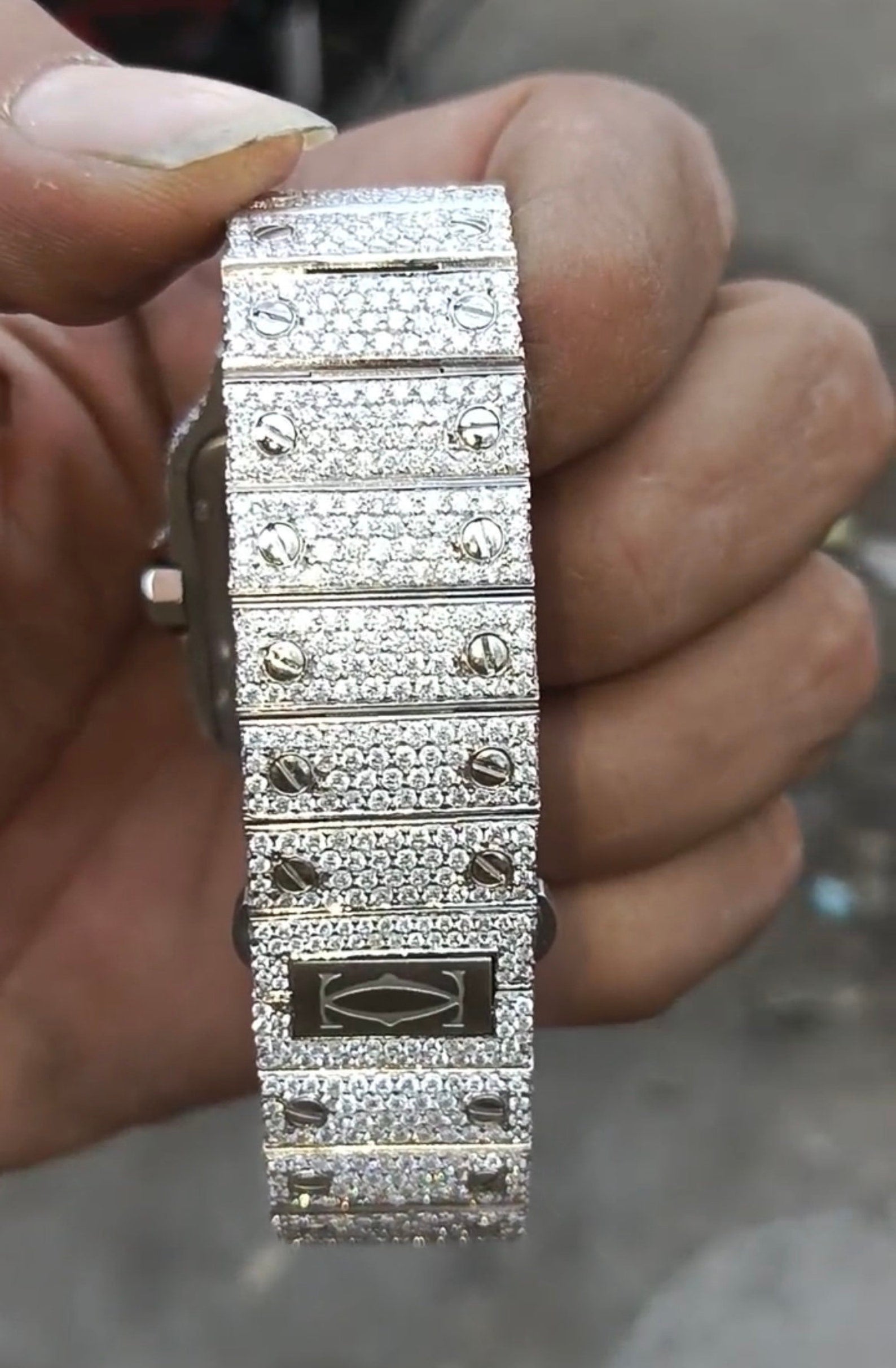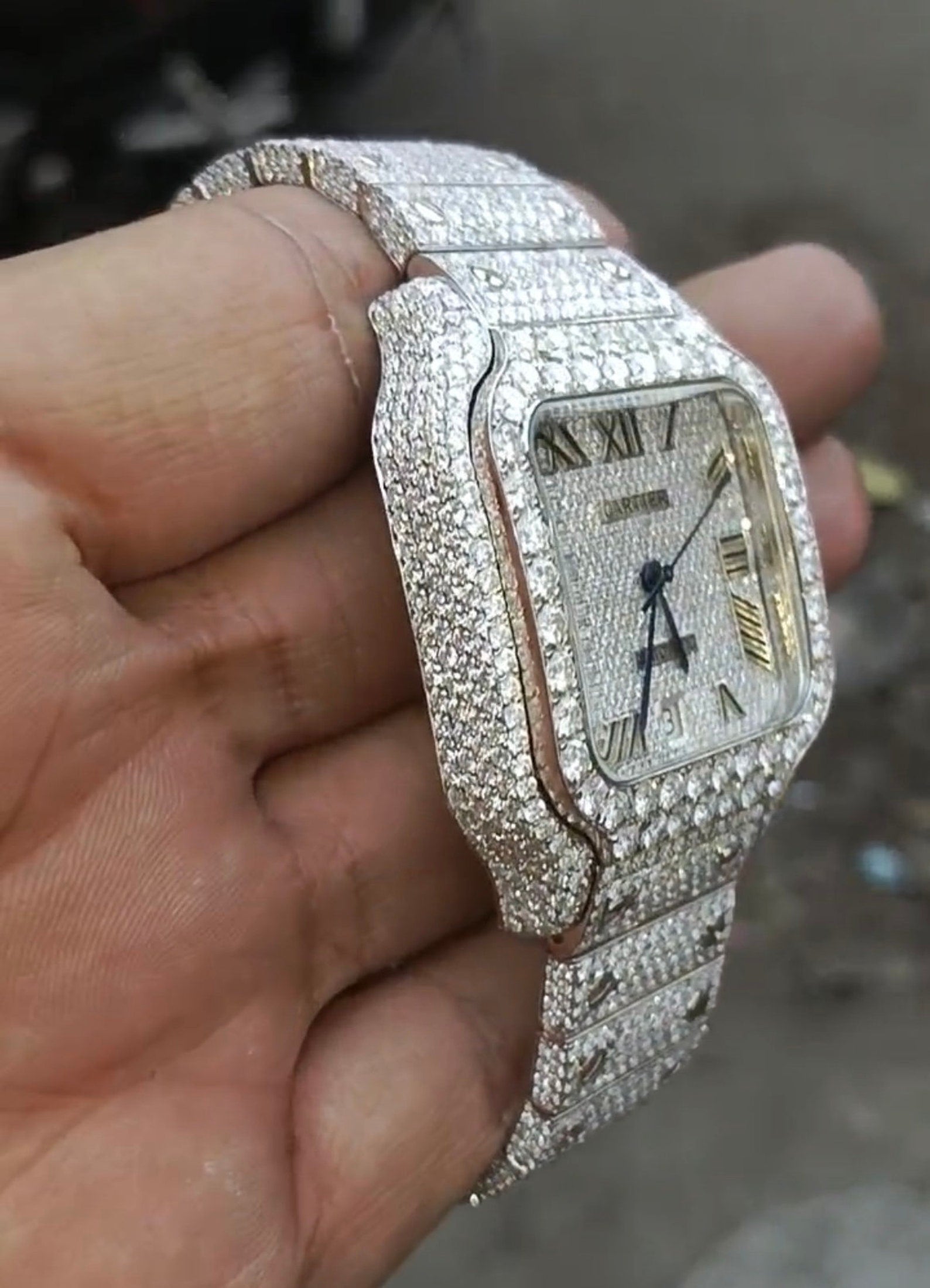 Iced Out Moissanite Cartier Watch | Japanese Movement & VVS Diamonds