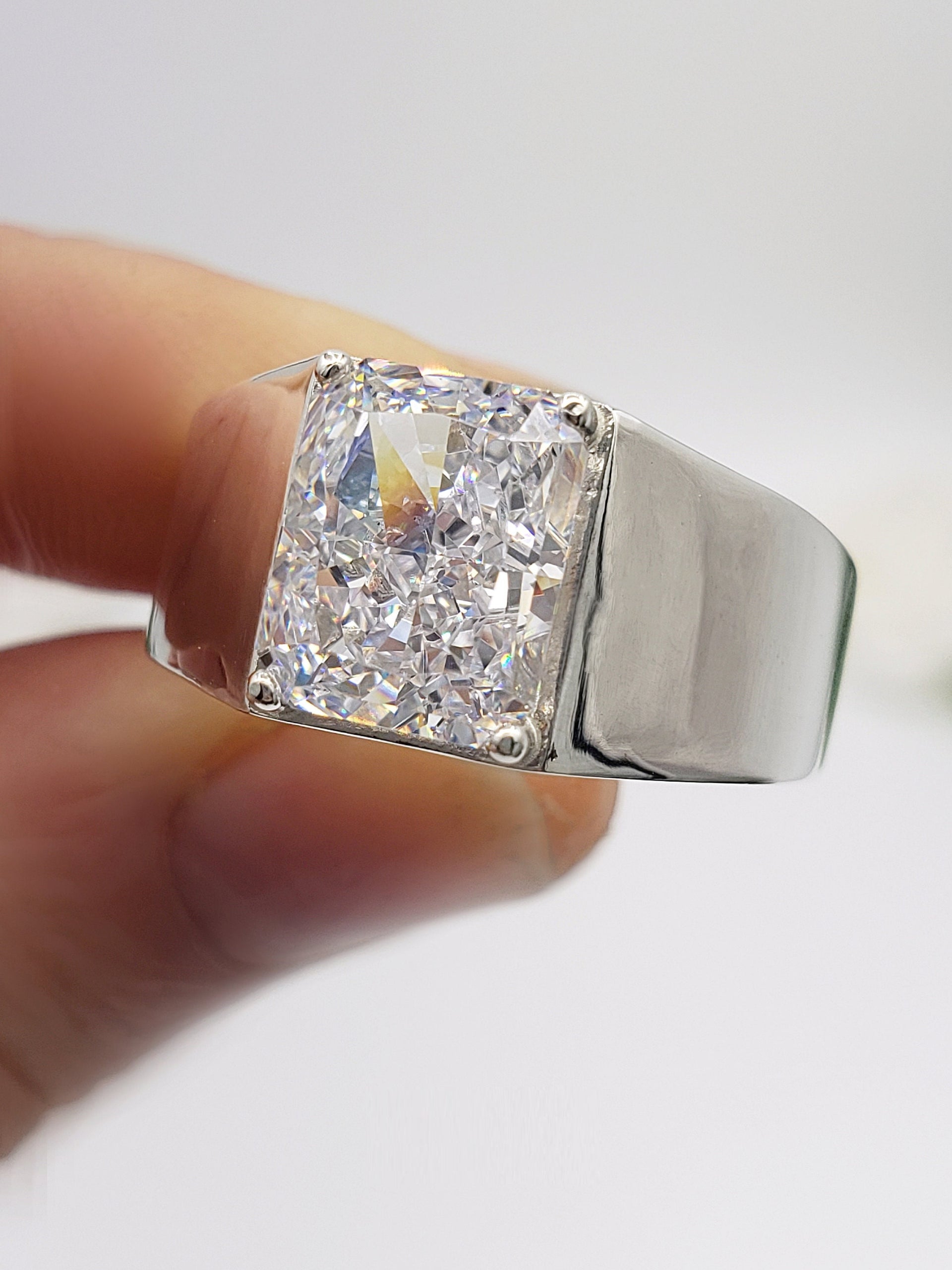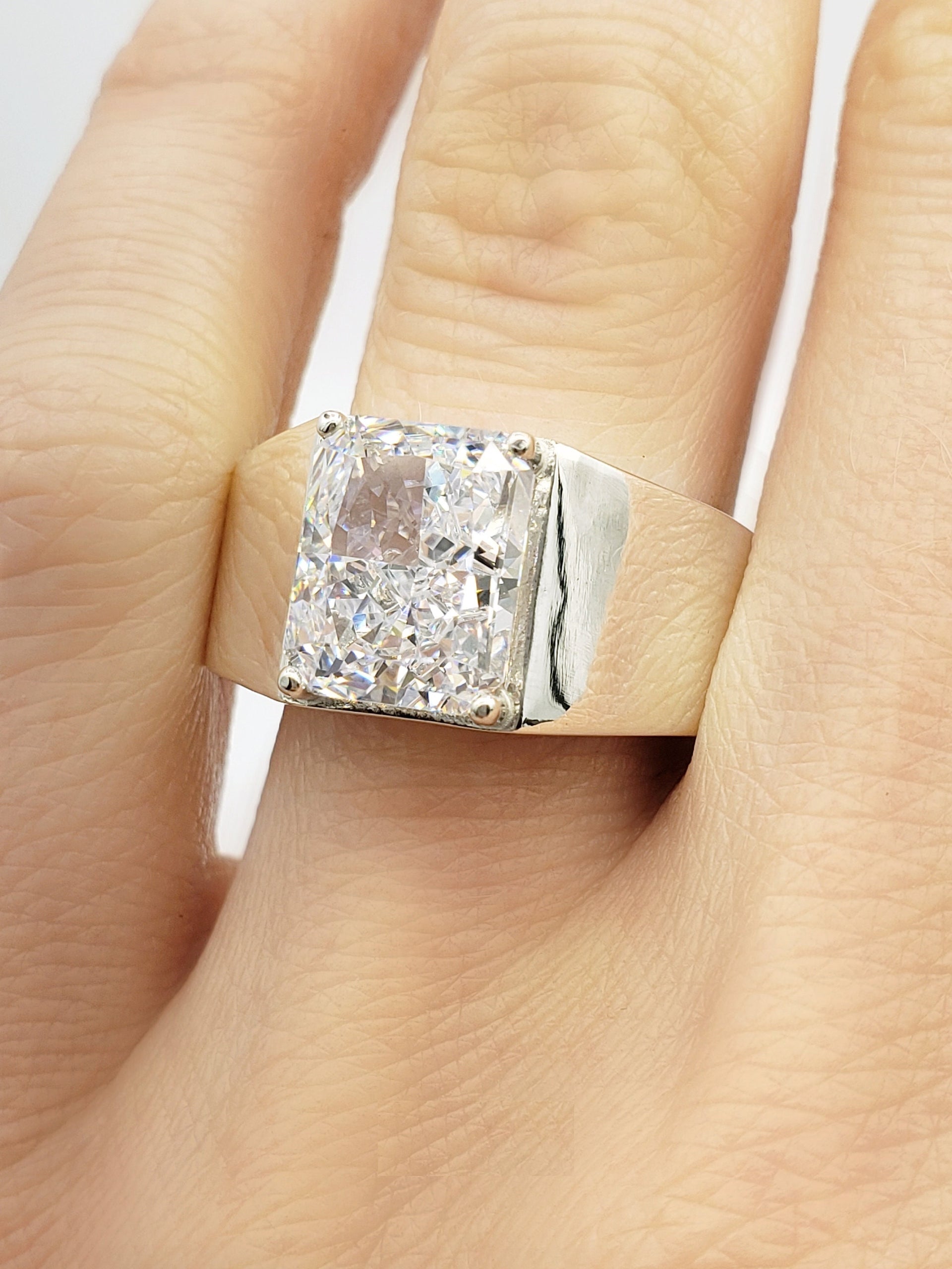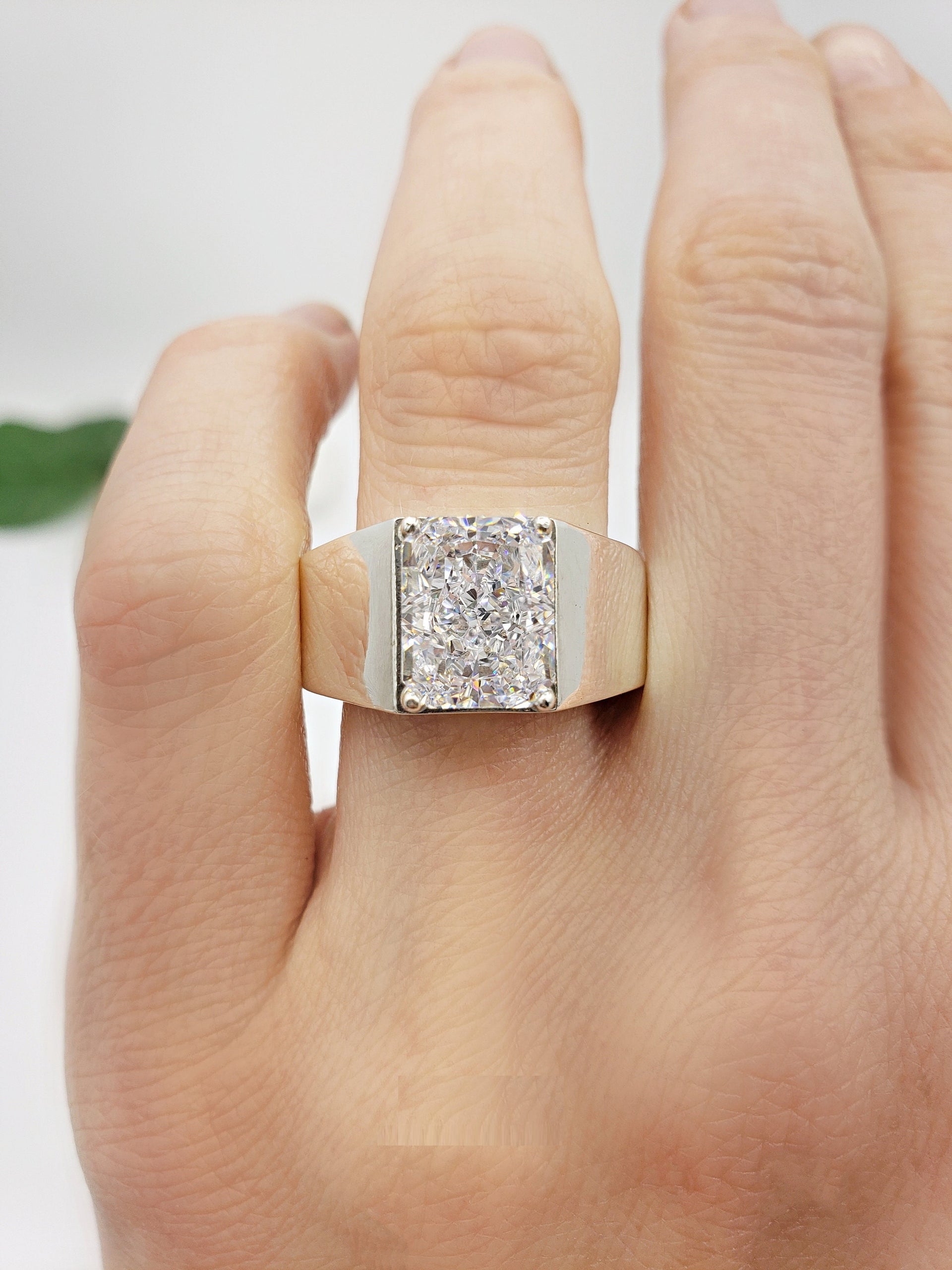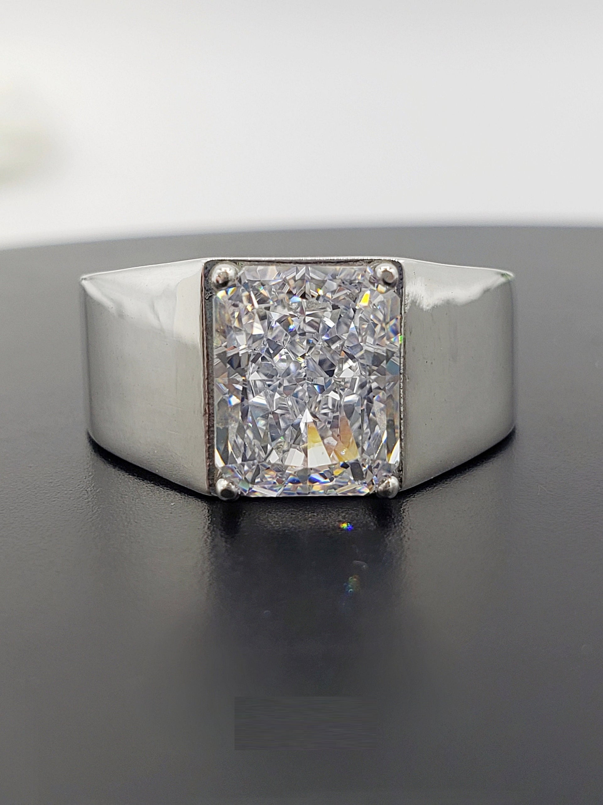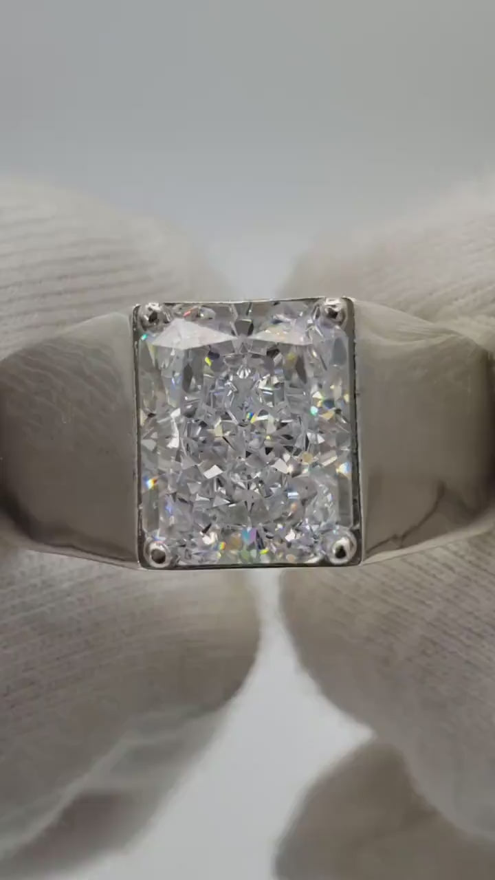 Discover the perfect blend of luxury and craftsmanship with our Men's Radiant Cut Crushed 3.50 Ct Ring. This stunning wide band statement ring, crafted in 18K gold and 925 sterling silver, is designed to make a statement. Ideal for engagements, anniversaries, or as a standout accessory, this ring combines elegance and sophistication.