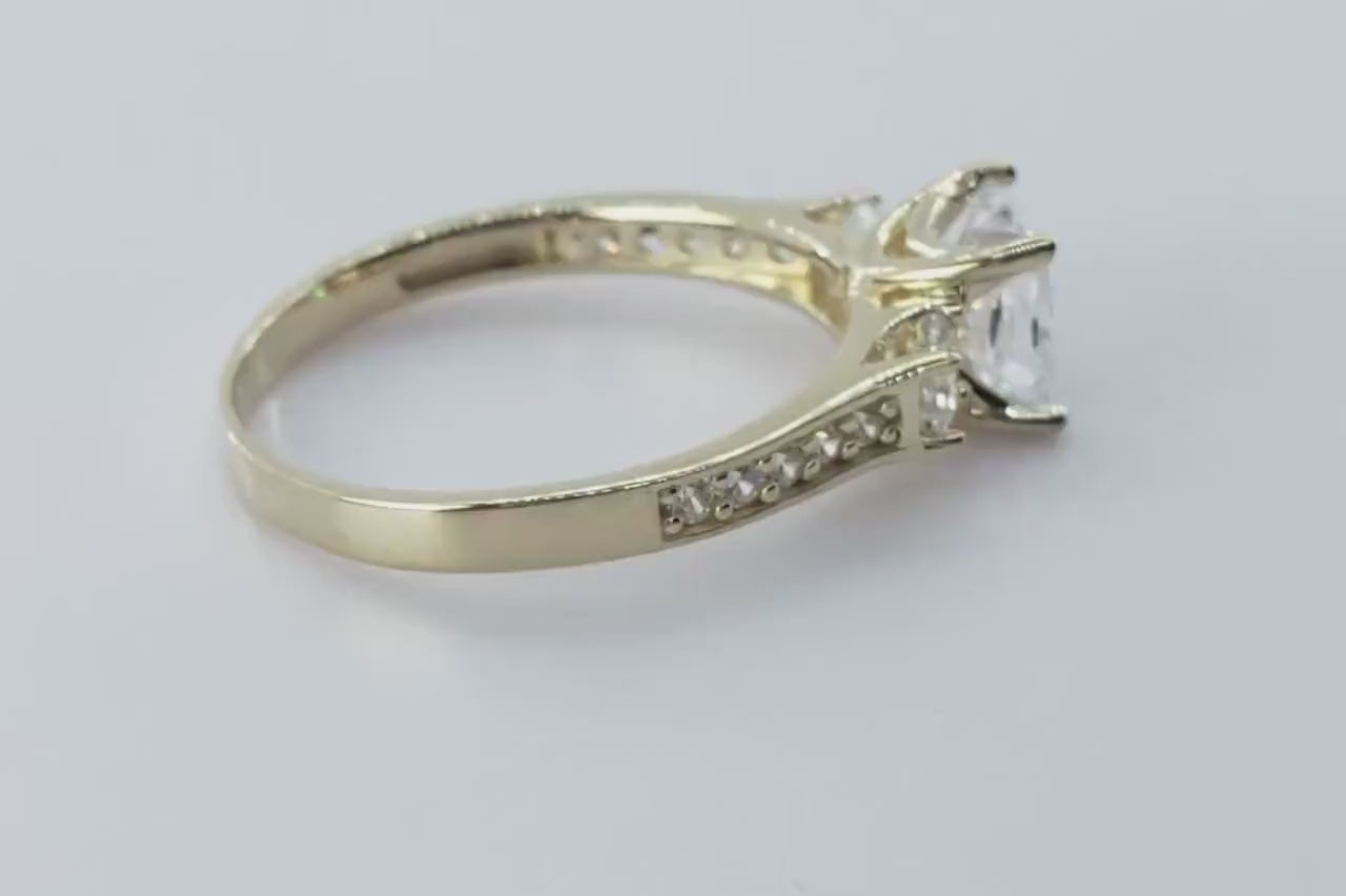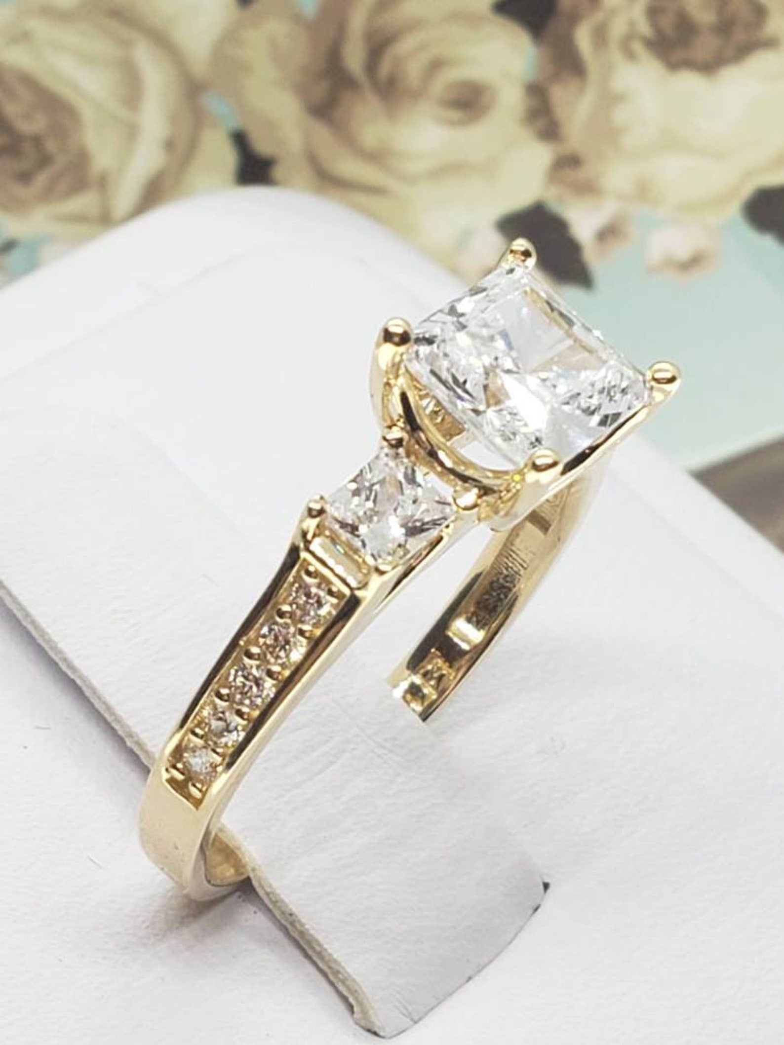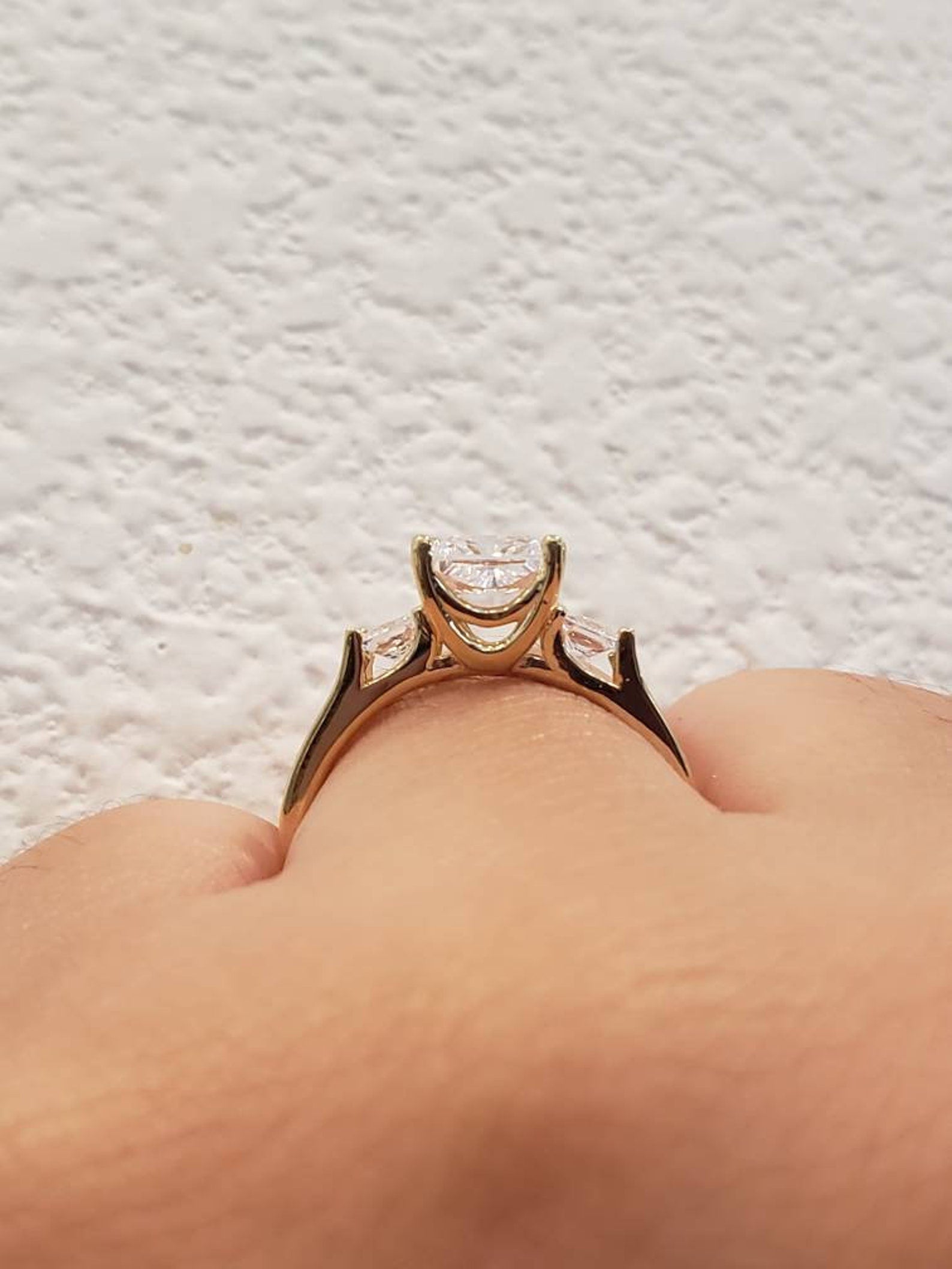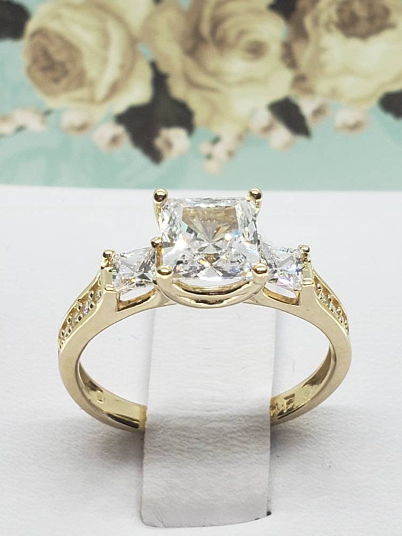 Three-Stone 3.0 Ct Princess Cut Engagement Ring for Women | Art Deco Prong Set in Solid Gold & Silver